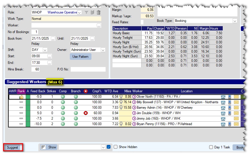 When using the [SUGGEST] button in a booking to search for temp workers who are available for a particular job or shift, you can now set a maximum limit on the number or records which will be returned.