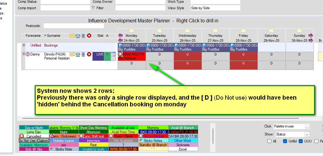 | NOTE: This feature only works on the newer "TEMP CENTRE" - If you are using the older [Bookings] workbench to access the planner, then this feature is unavailable and you will need to convert to using the Temp Centre if you require this feature. Our article HERE will explain the difference with the TEMP Centre |