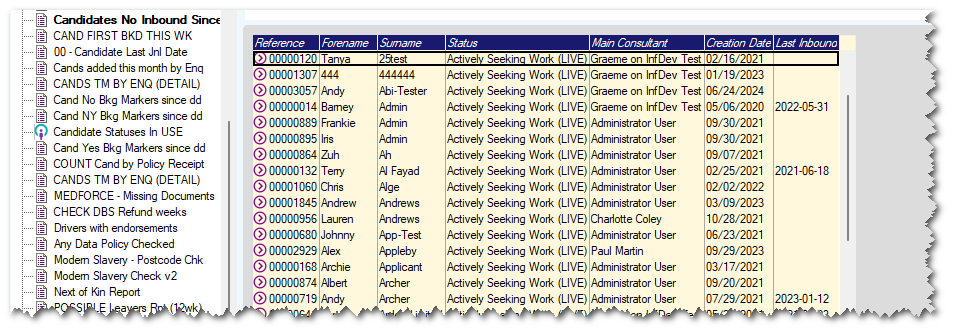 When viewing the [Candidates] / [Workers] workbench, or the [Compliance] workbench, it is now possible to include columns for Consultant Team, Consultant Other Team, or Consultant Main Office, as seen on the details in the User Profile.