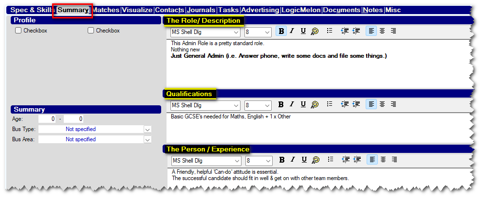 - Restored the ability to pull "Role" (Person or Quals) information from the old [Summary] tab of a Vacancy - if enabled.