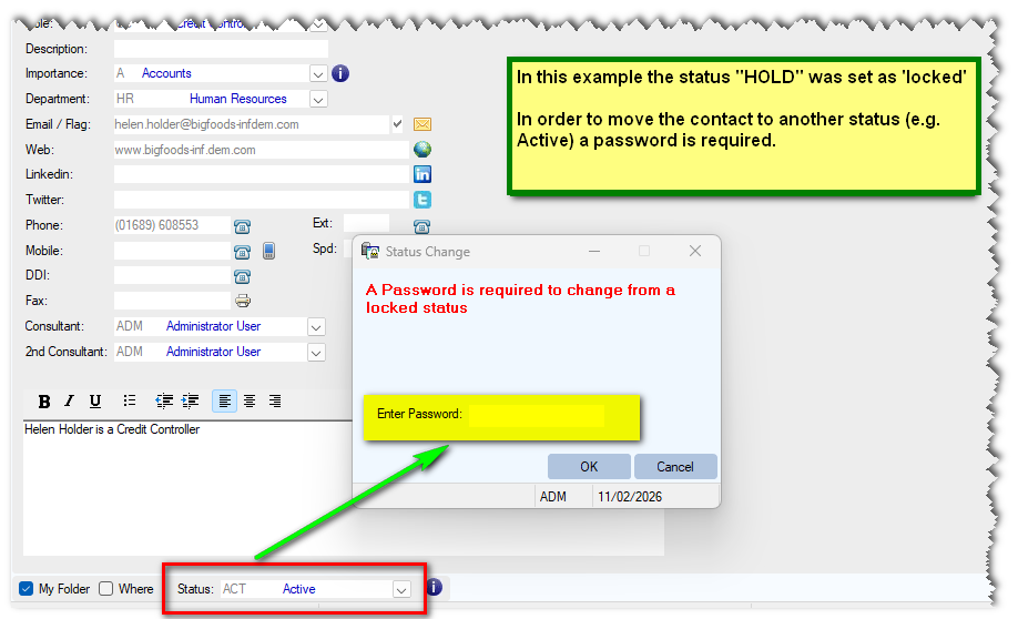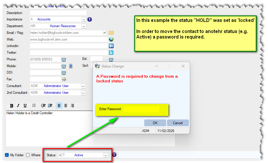 What this means is that once a contact has been set to that status, it will require a Password to override the lock, and allow them to be moved to a different Status.